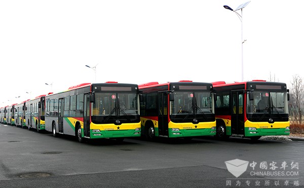 加纳共和国,位于非洲西部,因盛产黄金,独立前被称为“黄金海岸”。在西非国家中,加纳的经济较为发达,政局稳定。近年来,政府十分重视道路基础设施建设,不断加大在公共交通上的投入,首都阿克拉的快速公交系统和来往于附近城市的公交线路颇为发达。自2015年,共有100多辆黄海牌12米豪华空调巴士在加纳陆续投入运营,美观大气的外形、稳定可靠的性能、耐用节能的品质,深受当地民众喜爱,成为加纳首都阿克拉的一道靓丽风景线,而车身上醒目的“HUANGHAI”商标也让加纳人民充分感受到“中国制造”的魅力。黄海客车的主动培训、售后服务和充足的配件供应得到了用户的高度评价,良好的性价比和车型的一致性,也使得黄海客车在加纳完全站稳了脚跟。