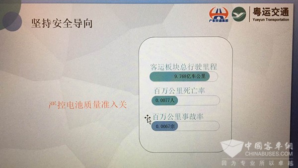 第三,坚持安全导向,稳步推进新能源公交车应用。新能源公交车特别是纯电公交车,电池安全问题成为企业在推广应用中关注的重点。近年来,国家与地方政府补贴使整车企业有巨大的利润空间,部分电池制造企业为搭上补贴最后这班车,在一定程度上忽略了产品的安全性,导致新能源公交车电池安全风险增大,容易产生电池起火、电池涉水安全等问题。粤运交通在采购新能源车辆时,严控电池质量准入关,必须是国内外知名电池产品,优化“三电”布置、加强防撞等被动安全设计,全方位确保新能源车辆的安全性。在新能源汽车动力蓄电池的技术选型过程中,通过对比我们的第一个新能源客车应用项目就选择了可以应用4C充电倍率的动力电池。该项快充技术的应用能够从城市公交运营的实际需求出发,利用车辆发班间隔时间,由驾驶员实现对纯电动营运公交车辆的短时、快速充电,提高了车辆的利用效率,降低了车辆停场时间和综合使用成本,且由于配电量的减少,减少了车辆装备质量,提高了电池散热性能和安全性,粤运交通也与该动力电池生产企业签署了《战略合作框架协议》,共同促进深度合作。