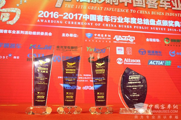 苏州金龙海格客车的智慧匠心源于对行业、对社会的责任,外化于对产品的精益求精、对客户及用户带来的全程无忧。也正是永续创新力、勇挑道路客车行业的绿色低碳重担,让海格客车在第11届“影响中国客车业”评选中,赢得“2016年度客车行业十大新闻”、“2016年度轻量化客车之星”、“2017年度推荐新能源”、“2016年度中国客车海外市场‘沙特之星’”四项大奖。