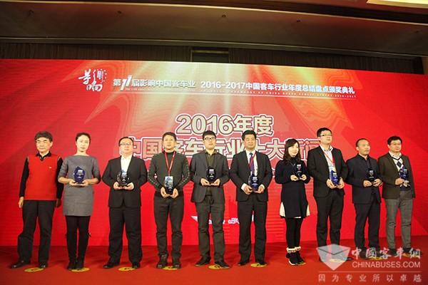 海格客车荣获“影响中国客车业”四项大奖,公司代表(左四)登台
