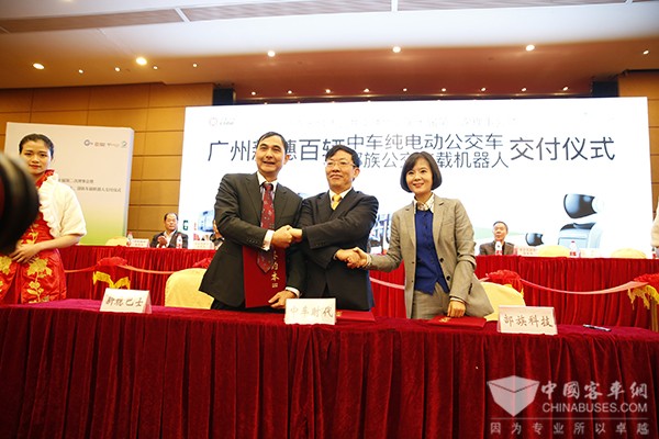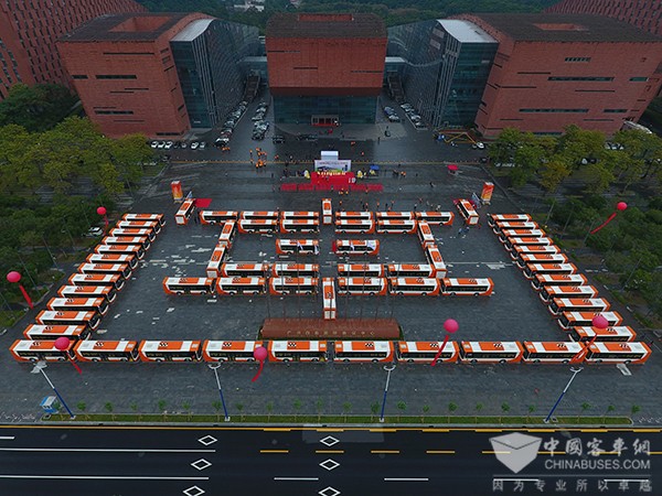 广州交付仪式上100台C10纯电动客车排列成“車”字,颇为壮观