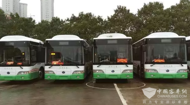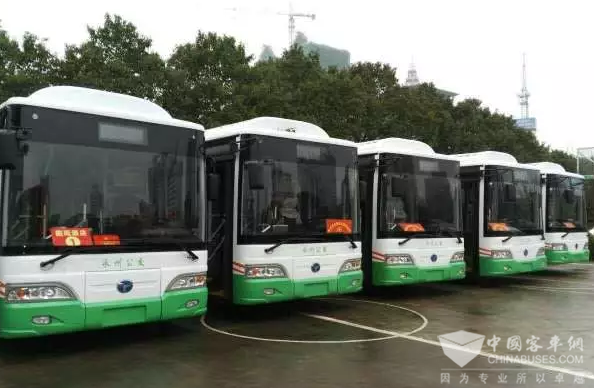 扬子江60辆新能源纯电动公交车,一字排开亮相永州吸引了不少市民前来观看。