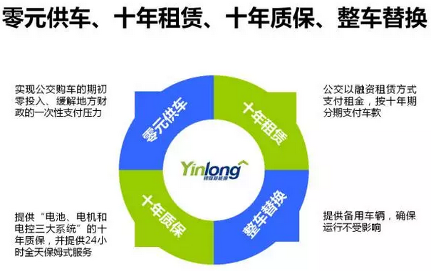 银隆推出的商业模式的金融模型中,可以承诺做到0元购车、十年质保与十年租赁,可以让公交企业实现绿色可持续发展,真正让公共交通市场化,不需要财政支持,不出现财政亏损,让公交企业健康地可持续发展。