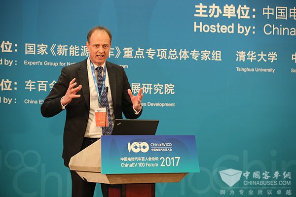 燃料电池现在贵,以后的成本会低于内燃机,但是锂电池怎么做也低不了内燃机,因为材料费用在那儿摆着。一个公交车同样的吨重,三吨到四吨,燃料电池是300公斤,材料是多少一算就可以算出来,所以能源效率高度提升是中国电动汽车发展的真正的驱动力。
