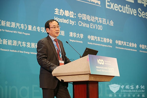“十三五”期间我们重点部署了车用燃料电池的发展,今天我很高兴,在展区看到了我们的很多燃料电池大客车的发展,从这个角度说起来它的发展也和燃料电池的材料,比如说碳子、交换膜、双极板,以及它的特性基础研究的进步密切相关。