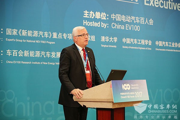 实际证明,中国的燃料电池在我们动力蓄电池纯电动汽车发展的过程当中,也具有自己的发展环境的优势。我们要借助这个优势来推动我们的发展。比如说我们现在已经建设了覆盖面比较大的充电桩体系,我们是不是可以考虑,尤其是在燃料电池研发的初期,是不是可以从补短板的角度来研究插电式或者增程式燃料电池在汽车上的应用,这样可以有电的时候就充电、有气的时候就充气。从发展的本身,燃料电池和动力电池的特性上也有一个互补的作用,尽量使燃料电池保持比较稳定的发展,对于延长寿命,减少燃料消耗,是很有帮助的。我们在外面可以看到装有10-30千瓦小型乘用车的应用,还有30-60千瓦在公共客车或者中巴上的应用,这一点看起来我们的企业还是发现了我们的长处。