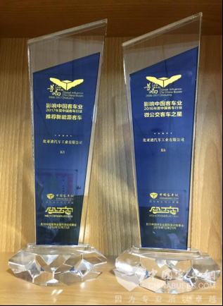 同月,在工业和信息化部赛迪研究院、新能源汽车报举办的2016(第二届)中国新能源汽车领袖峰会上,比亚迪K8纯电动公交车又摘得一枚大奖,荣膺“2016年度新能源汽车最佳公交车型奖”。
