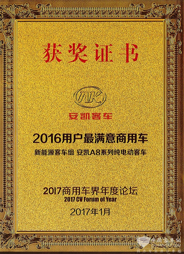 大奖背书,安凯A8获“2016用户最满意商用车”殊荣