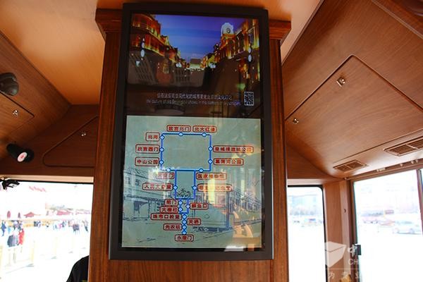 记者注意到,每次临到站时,除车内讲解员对于临近景点的解读外,车内的多媒体显示屏还会显示与游览内容相匹配的信息流,分别介绍沿线每一个景点,在车辆到站前做重点推送,使游客了解景区的主要景观和历史,同时宣传景区信息、旅游指南、商业区、酒店信息,显示屏的滚动字幕用双语推送到站信息以及政府旅游提示。