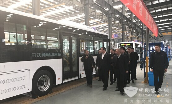 在金晓辉副总裁的陪同下,徐广国等领导一行先后参观了核心零部件区、轻型车总装车间以及体验开沃全系列新能源汽车,详细了解了南京金龙新能源汽车生产管理、工艺流程、质量保证等情况。在总装车间,徐广国书记仔细观看了纯电动客车生产流程,仔细询问了南京金龙新能源产业布局和规划、开沃新能源汽车的性能特点、全国各地的推广使用、新能源汽车日常使用维护等情况。金晓辉介绍到南京金龙2020前将达到4万辆新能源轻型商用车、2万辆新能源大客车、10万辆新能源MPV+SUV的产能和市场规模。目前南京金龙在深圳和武汉的项目已经启动,西北生产基地正在推动落实中。