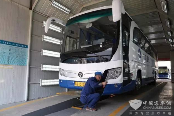 福田欧辉BJ6129正在接受出发前的安全检查