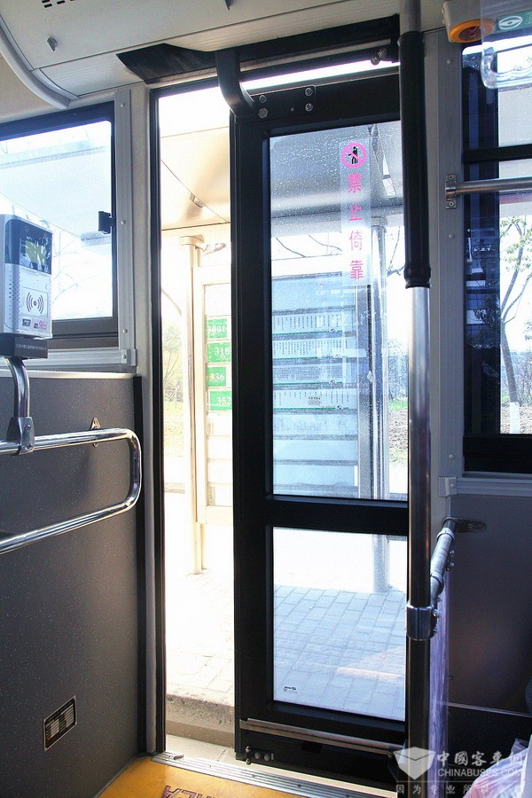 公交车传统内摆门需在门口处设置黄色禁止站立区域,避免开关门时夹伤乘客。电动塞拉门门扇下面与地板面没有间隙,可避免夹伤乘客脚部。车门向车外打开,占用车内空间极小,不仅有效扩大了车内站立区域,也增加了公交车载客量。在发生紧急事件时,智能电动塞拉门也可快速疏散乘客,安全性更高。因为车门框全周胶条密封,隔音、隔尘效果好,提高了乘车的舒适性。同时密封胶条采用内藏设计,门扇外侧与车体齐平,提升了公交车辆的美观度。