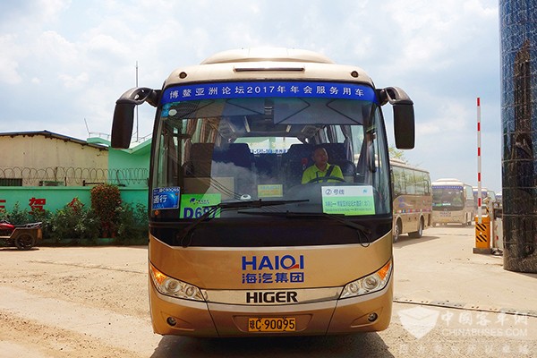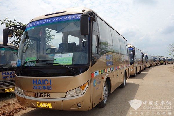 2017年3月23日,以“直面全球化与自由贸易的未来”为主题的博鳌亚洲论坛2017年年会在海南博鳌盛大开幕,国务院副总理张高丽将应邀出席开幕式并发表主旨演讲。作为论坛圆满举办的重要一环,承担交通服务保障工作的大中型客车在会场间来回穿梭,格外引人注目。其中,最频繁遇见也是数量最多的当属苏州金龙海格客车,俨然会场外耀眼的明星。