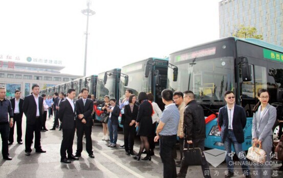 与会领导和嘉宾参观福田欧辉BJ6105(ISG)混合动力公交车