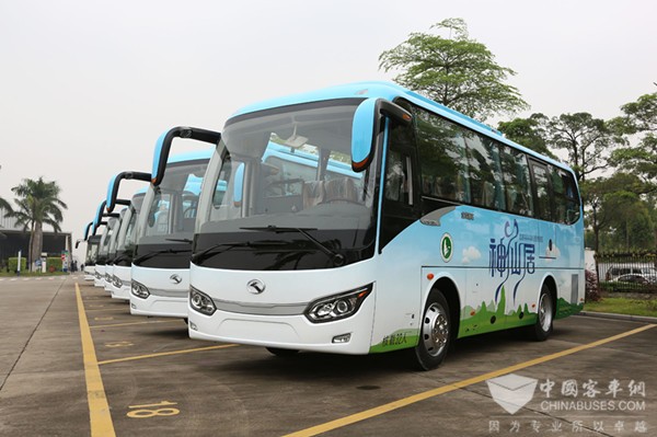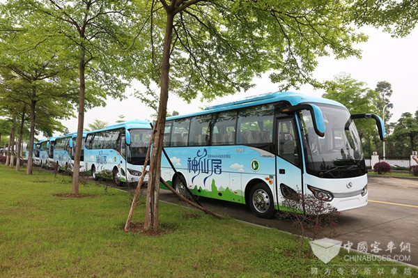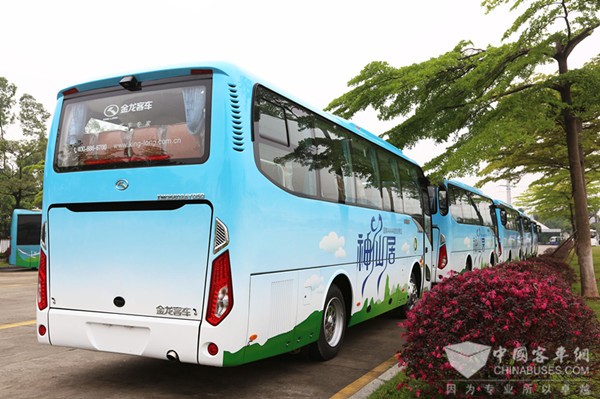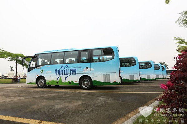 2017年4月26日,十辆XMQ6802AY已交付神仙居旅游集团。蔚蓝基调的车身上,青峰座座,白云悠悠,让人心生神往。据悉,该批车辆将于近期投入使用,接送游客从神仙居旅游景区集散中心到景区南门和北门。“山不在高,有仙则名;水不在深,有龙则灵。”一辆辆美观舒适的金龙客车,穿梭于仙山绿水中,为这5A级景区又增添了一道靓丽的风景。