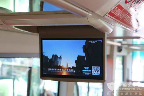 每当临到站时,除车内讲解员对于临近景点的解读外,车内的多媒体显示屏还会显示与游览内容相匹配的信息流,分别介绍沿线每一个景点,在车辆到站前做重点推送,使游客了解景区的主要景观和历史,同时宣传景区信息、旅游指南、商业区、酒店信息。显示屏的滚动字幕用双语推送到站信息以及政府旅游提示。