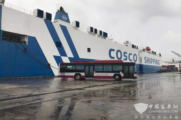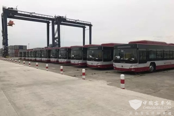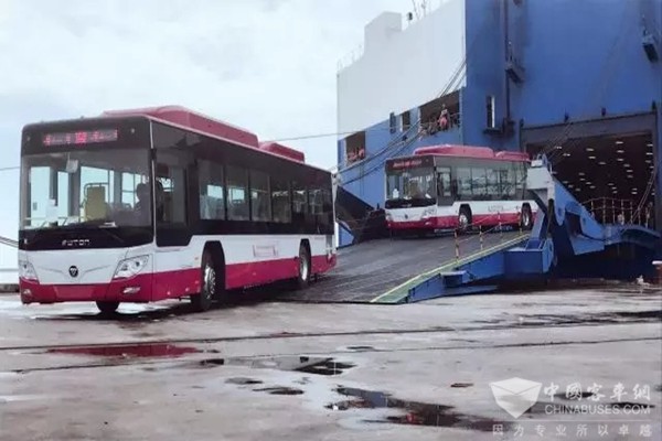 福田欧辉清洁能源公交车停放在仰光港深耕“一带一路”