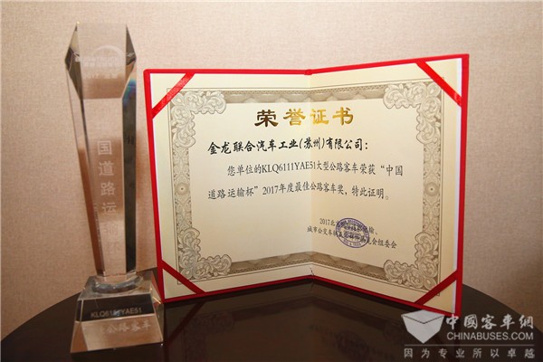 海格KLQ6111Y获2017年度最佳公路客车奖