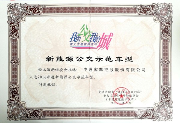 中通新能源客获得新能源公交示范车型