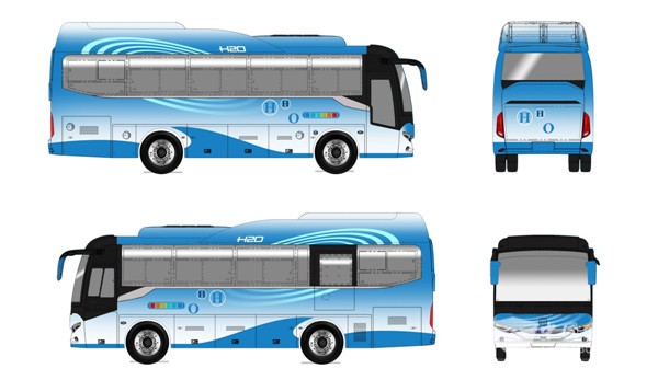 此次发布的LCK6900FCEV外形以大海之蓝色为主色调,色彩清新亮丽,表现环保主题;以翻腾的海浪及晶莹的水滴为主题图案,体现氢能源似海洋之浩渺无尽,水滴的涟漪似能量源源不断的供给;跳跃的字母直接表现出能量供给方式是通过氢气与氧气化学反应生产水的形式而产生,寓意与颜色相呼应。