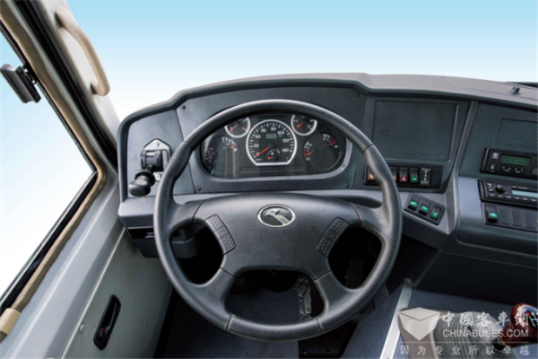 在配备方面,睿越XMQ6750选用潍柴新研发的WP4.1Q150发动机,可靠性高、舒适性好、动力强劲、高效省油,满足各种路况动力需求。驾乘方面,人机工程设计良好,司机驾驶轻松,行驶过程更不易产生疲劳感;全新开发座椅,采用纳米透气环保面料,乘坐更加舒适;全车额定承载为30+1座(中型中级为29+1座)。后行李舱采用阶梯式行李舱设计,有效地将容积增大至1.6立方米。内饰前后顶及风道采用新GMT模压件,比现有常规的PVC双层挤塑件耐候性好,且轻质环保;侧围PVC板的固定采用橡塑海绵,替代原有的透明硅酮胶,提高整车环保性;侧面大开度的乘客门,也提高乘客通过性。