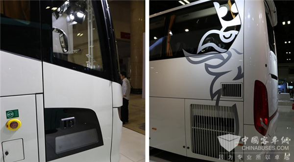 在车身黑色的前面板下方,ACC主动式巡航系统的雷达探头位于其中。在车辆行驶时,ACC系统利用低功率雷达测量与前车的确切位置,当前车减速或是有其他车辆进入视野时ACC系统就会根据雷达发出的信号来控制发动机,使得车辆一直与前车保持安全距离。当前车加速时,ACC系统会根据车距来控制车速,当前方道路无车辆行驶时系统会恢复设定车速;LDW车道偏移预警系统摄像头与ACC主动式巡航系统相结合能够使客车的安全系数得到最大化的保证。在车辆巡航行驶时能更加平稳,并能降低疲劳驾驶的事故率,改善驾驶员的驾驶习惯等功能。