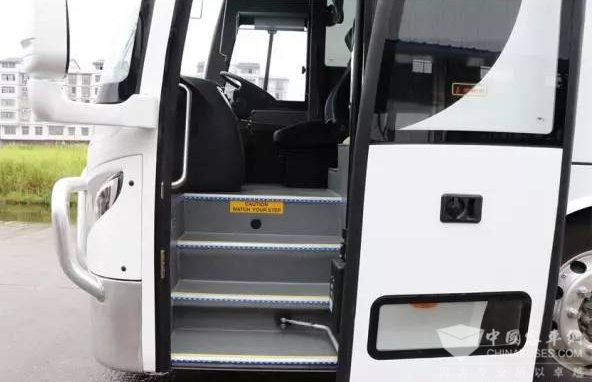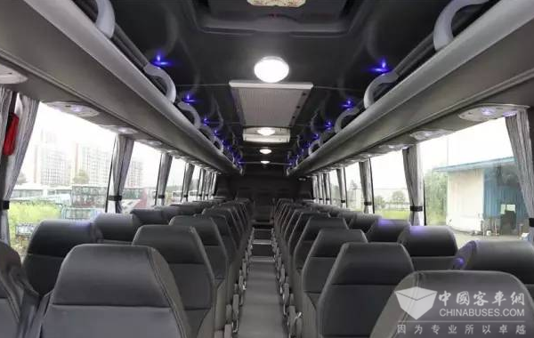 整车采用五大总成部件封闭的桁架结构、不锈钢全承载车架、中间桁架式大行李舱、不锈钢矩形钢管组焊;结构刚度强,抗扭、抗弯能力强,防锈、防腐蚀性能好。其车身两侧及车顶均采用玻璃钢纤维蒙皮,整车安装深色玻璃,高端大气,且防隐私;行李舱、发动机舱均使用铝合金舱门;内饰柔性设计,内饰材料及胶水均为环保材质;钢木复合式地板结构,并铺覆防滑耐磨地板革;澳标可调高靠背豪华乘客座椅,并配备三点式安全带;车内配有USB插口、车载DVD、液晶显示屏、监控摄像头、倒车影像及倒车雷达等。