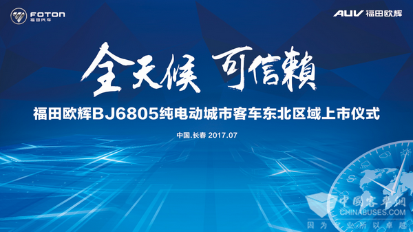 2017年7月14日,在第十四届中国(长春)国际汽车博览会(简称长春汽博会)上,中国绿色客车领军企业福田欧辉,带来了一款以“绿色、科技、品质”显著标签的BJ6805纯电动城市客车,并宣告其在东北区域的正式上市。