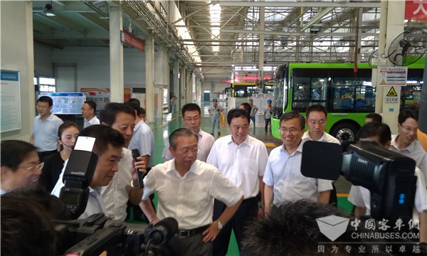 2017年7月20日上午,山东省委书记刘家义在聊城市委书记徐景颜,市委副书记、市长宋军继的陪同下来中通客车视察指导工作。中通客车董事长李树朋、总经理孙庆民陪同视察,汇报公司情况并重点介绍了公司新旧动能转换取得的成绩。