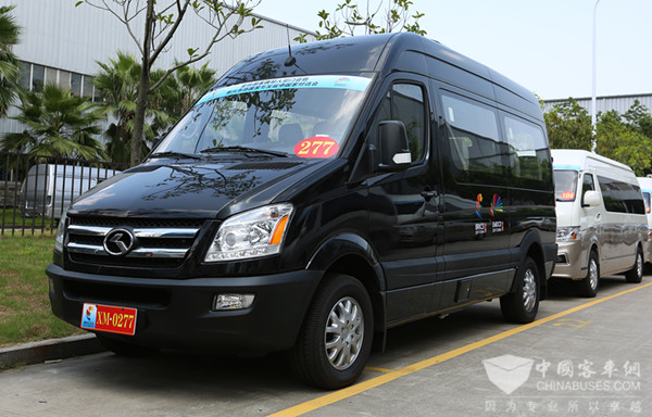 为做好这一高规格的服务用车接待,金龙客车在车型选择上精挑细选。这批服务用车包括凯歌、凯特、新五系XMQ6105AY和XMQ6125HY等车型,参与会晤期间参会嘉宾和媒体的通勤任务,服务覆盖面广,要求和标准极高。金龙凯歌L超长轴豪华型商旅车定位于中高端公、商务团体接待和旅游市场,是自主品牌高端轻客中的精品车型,纯电动版的凯歌,还曾拥有服务首届青运会与中国电动汽车百人会的经验;金龙凯特源自欧洲顶级商用车血统,处处彰显尊贵气息;XMQ6105AY和XMQ6125HY均是金龙客车在传承和革新畅销16年的经典五系产品基础上,全新打造而成,外观大气利落、内饰精雕细琢,实现经济、安全、舒适、环保、便捷的五大升级。
