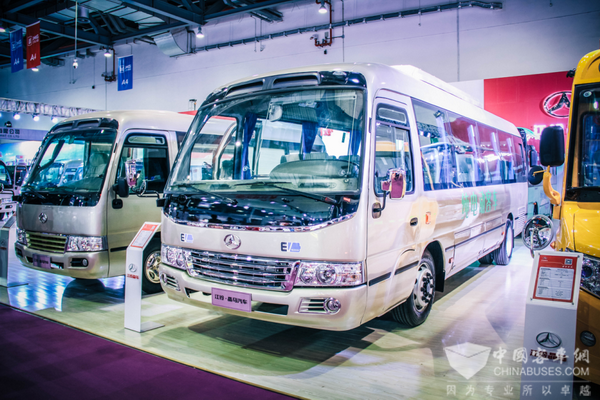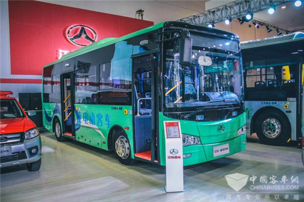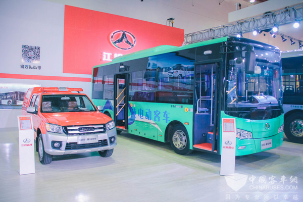而展出的福尊纯电动新能源客车,是针对新能源客车市场推出了一款战略新品,整车外型大气时尚,充满现代都市气息;动力方面采用高品质磷酸铁锂电池,满足续航需求;采用江铃优质底盘,高强度骨架车身,整车阴极电泳,是安全、舒适、环保客车的典范。