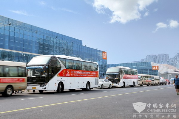 场馆内金砖元素抢眼,而场馆之外,金砖元素同样惹人注目。其中,服务金砖厦门会晤的金龙客车,再次满怀热情接送来自世界各地的政要、企业家和客商等参会嘉宾。同时这是金龙客车助力厦洽会十六年来,阵容最为强大的一次。本次金龙客车派出70辆精品客车,包括新五系大巴、凯歌商务车等经典车型。