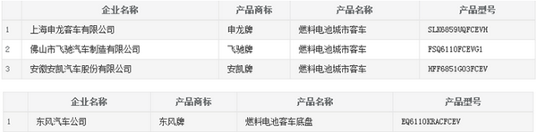 安凯、申龙、飞驰三款氢燃料电池客车上榜