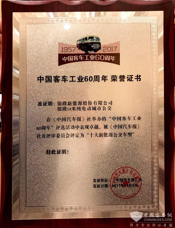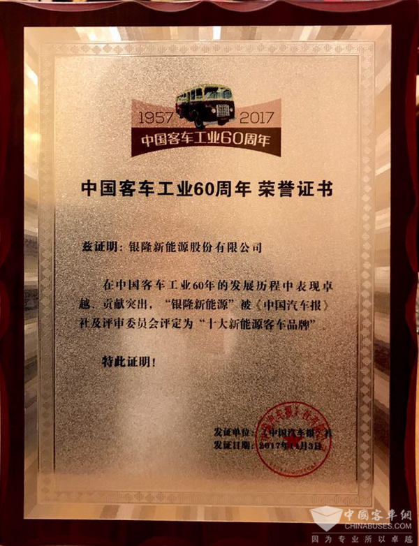 在这次盛宴中,银隆新能源荣获“十大新能源客车品牌”、“十大新能源公交车型”两项大奖,以实力证明银隆在新能源行业的领军地位。