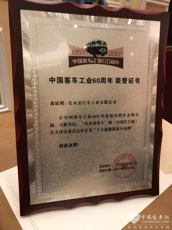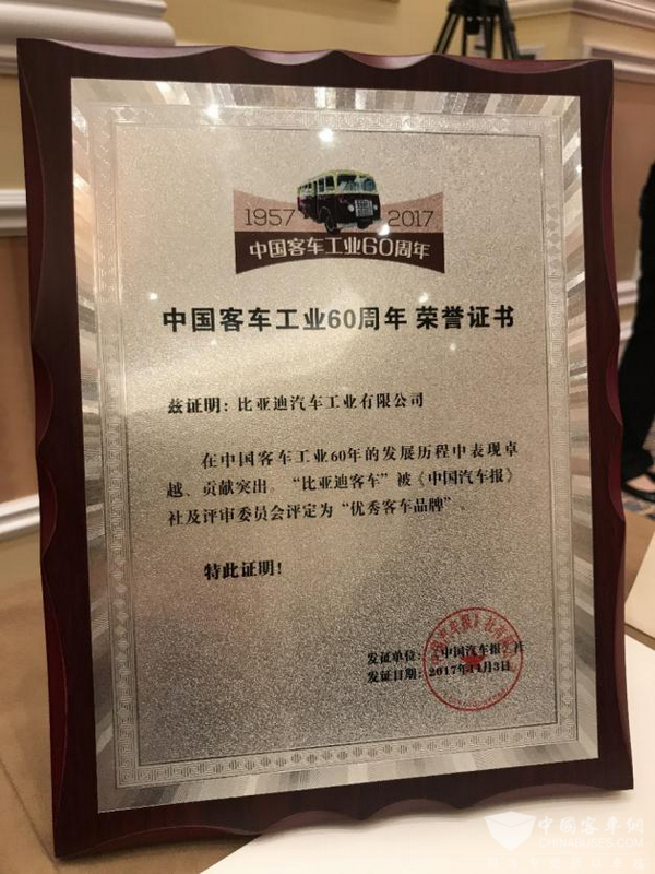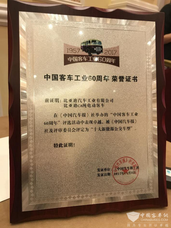 走科技品质强国路!比亚迪连获中国客车工业六十周年盛典大奖