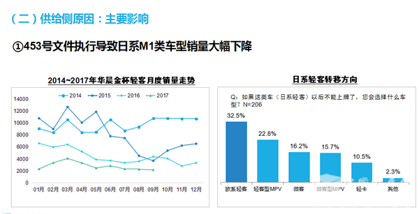 而供给侧方面,主要受政策影响所致。首先,工信部453号文件执行导致日系M1类车型销量大幅下降。其次,新能源补贴政策变化频繁,导致新能源轻客销量大起大落。