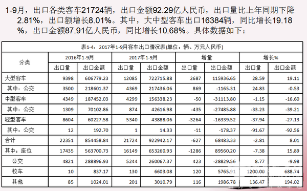 佘振清:2017年前三季度国内外客车市场特点及简析