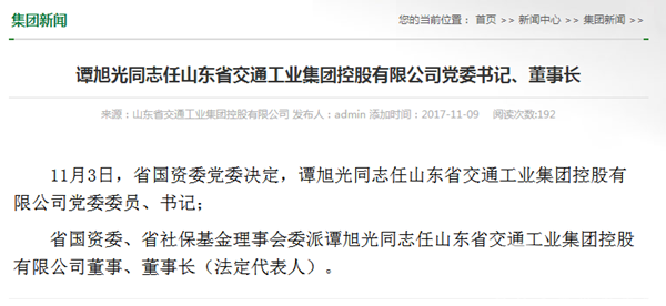 谭旭光兼任山东交工集团董事长