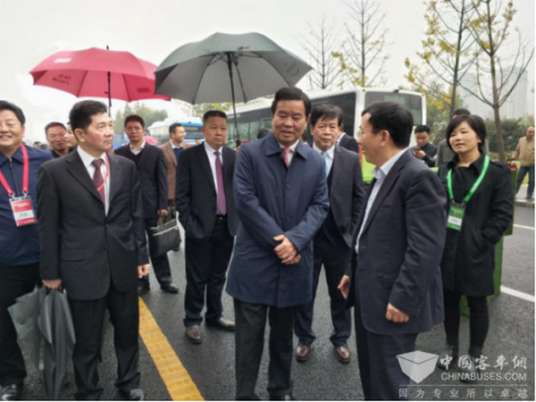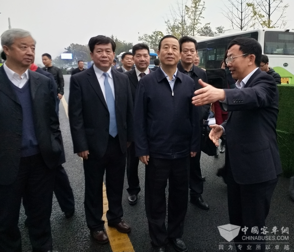 湖南省副省长何报翔参观中车电动新能源汽车,申宇翔做详细介绍