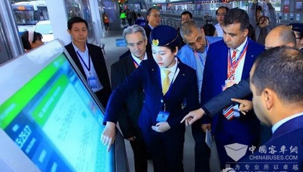 在参观了BRT快速充电装置后,摩洛哥政企考察团乘坐BRT1路扬子江纯电动新能源公交车,体验搭乘服务。摩洛哥盖尼特拉市长表示:武汉市快速公交线路的布局设施便利,公交车环保高效提档升级,增强了公交出行方式的吸引力,提高了公交分担率,极大方便了市民乘坐公交车出行,这对于盖尼特拉市公共交通建设起到了良好的示范借鉴作用。