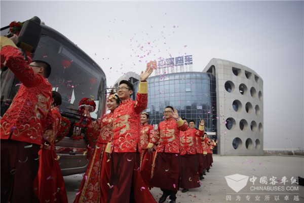 追求幸福,是人之天性。世界上,幸福家庭常有而“幸福企业”实属罕见。而中通客车通过“家”文化的桥梁和纽带,将企业的发展与员工的幸福指数“融为一体”,这时,“厂兴我荣,厂衰我耻”成为职工发自内心的真挚感情,“爱厂如家”成为员工的自觉行动。比如,从2012年起,每年一届的集体婚礼就有效提升了员工的归属感与认同感。在2017年元旦假期期间,中通客车隆重举行了第五届集体婚礼,来自公司的16对新人在这次典礼上通过巡游、留影、宣誓、典礼等形式喜结良缘。每次集体婚礼上,中通客车的董事长和总经理都会亲自到场,为新人送上祝福。目前,通过集体婚礼走向幸福家庭的中通员工已达到百余对。在集体婚礼上,他们收获的不仅是自己的幸福,更有领导和同事的祝福和欢笑,中通“大家庭”其乐融融。