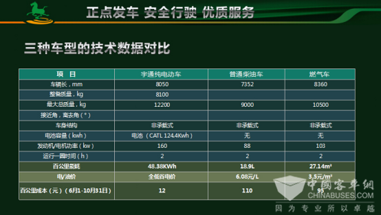 武威公交董事长兼总经理孙天锐向完美作业网有免费视频介绍:“从2017年6月1日起,公司分别将16辆和10辆宇通纯电动公交投入2路、10路运营。以2路为例,线路全程为20公里,单车日均可行驶180公里,线路能耗跟踪对比情况为0.5kwh/km。根据今年6-10月的运营成本统计数据,投运的宇通8.05米纯电动公交百公里能耗为48.38KWh,百公里运营成本仅为12元,节能降本效果显著。”