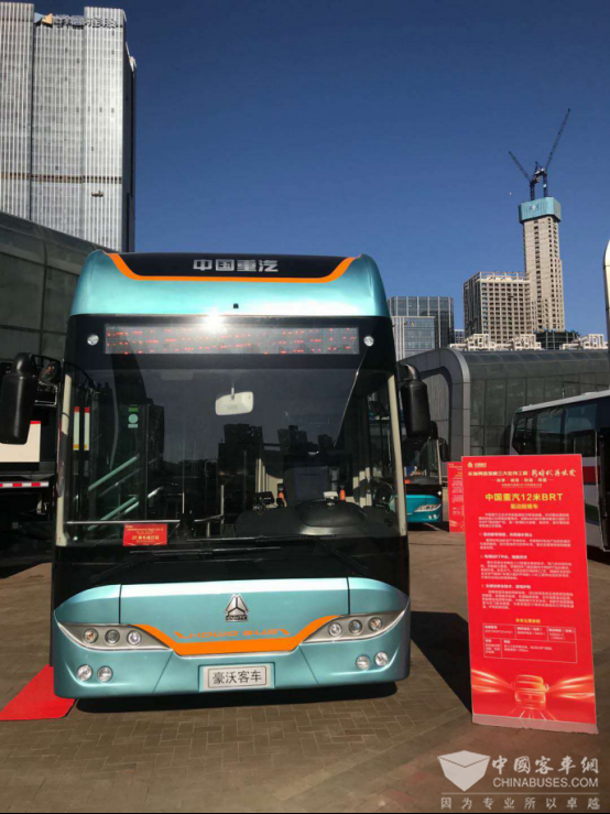 商务大会期间举办新产品新技术展览,各单位分别展出了代表产品。豪沃客车销售部把握市场方向,推动绿色出行,本着科学、诚信、和谐、共赢的理念,从安全的角度出发,充分考虑客户需求,本次展出除了12米BRT四开门氢燃料电池客车之外,还有11米高一级纯电动座位客车、12米BRT四开门气电混合动力公交客车,打造了中国客车全新驾乘体验。