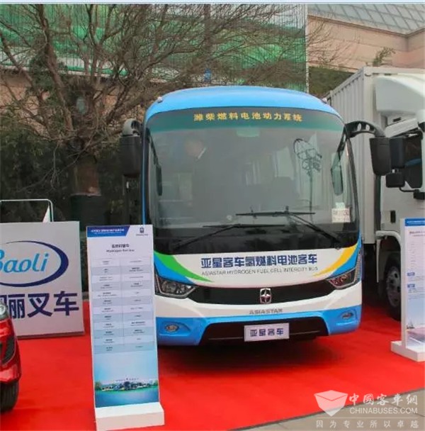 在十九大报告中,习近平总书记提到“我们要建设的现代化是人与自然和谐共生的现代化,要提供更多优质生态产品以满足人民日益增长的优美生态环境需要。”亚星客车一直积极打造更加绿色高效的产品并以“为全球提供一流的大众交通生活”为使命。亚星首台氢燃料电池客车隆重亮相本次商务年会,氢燃料电池是一种将氢气与氧气发生电化学反应产生电能的装置,不同于蓄电池,其过程不涉及燃烧,无机械损耗,能源转化率高,产物仅为电、热和水蒸气。该车型整备质量6.6吨由氢燃料电池发电,整车续驶里程大于300公里,每百公里电耗小于35度车辆行驶最高时速可达95公里/小时以上,与蓄电池纯电动客车相比更加绿色高效。