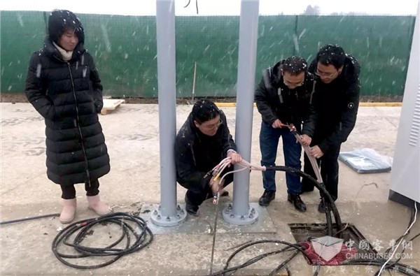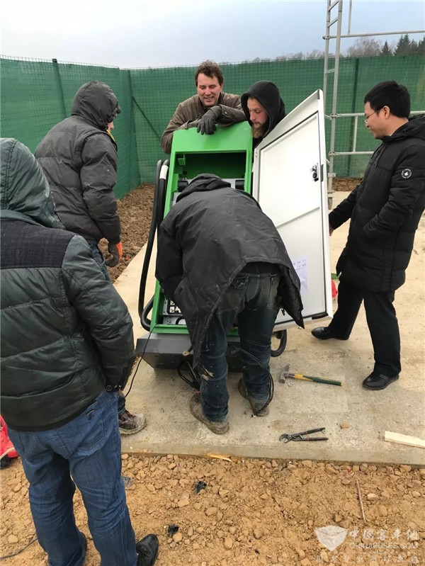 为了给客车提供一整套的纯电动客车解决方案,车辆、受电弓、充电机等设备全部由中车电动“私人订制”,并从中国出口。新车及设备抵达法国后,中车电动安排了专业团队进行车辆调试和充电机安装工作。巴黎气温变化大,加上时差原因,这让刚到法国的团队成员很不适应,有时一天要经历四个天气(阴、晴、雨、雪),且法国冬季白天时间短,白昼时间为9小时。然而,这一切都不能阻挡中法合作的热情,最终在两家公司共同努力下顺利完成示范站建设工作。