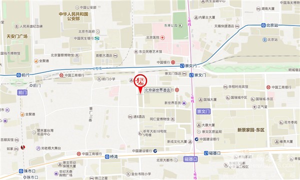 地铁2号线崇文门站D口出,西行至第一个十字路口左转100米即到。