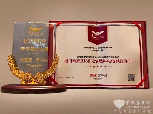 福田欧辉BJ6852氢燃料电池客车荣获“未来客车之星”