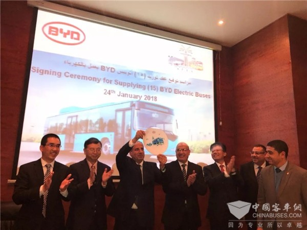 当地时间1月24日,埃及亚历山大省客运局创造了一个历史——与比亚迪签署订购15台纯电动巴士订单协议,由此埃及将迎来历史上首批纯电动巴士,开启公交电动化新时代。这是埃及顺应全球能源变革,改善交通环境迈出的历史性的一步。
