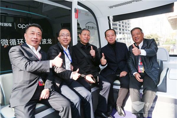 与此同时,在第一代自动驾驶车的基础上,双方正式联合开发国内首款量产的无人微循环驾驶巴士——“阿波龙”,“Apollo基因”与“金龙智能车联”注入其研发全流程,除自动驾驶解决方案和网联科技外,还渗透到整车设计全过程,包括整体车辆外观和内饰设计、人车交互系统的整体设计、特定场景需求架构设计以及为微循环车特定的自动驾驶系统等环节。11月16日,“阿波龙”在百度世界开发大会上正式亮相,作为中国首辆商用级无人驾驶微循环车,百度创始人、CEO李彦宏在主题演讲中表示,百度与金龙客车联合开发的第二代无人驾驶微循环巴士“阿波龙”将于2018年实现商用化量产及上线运营,表明双方战略合作的商业化项目已经取得了重大进展。