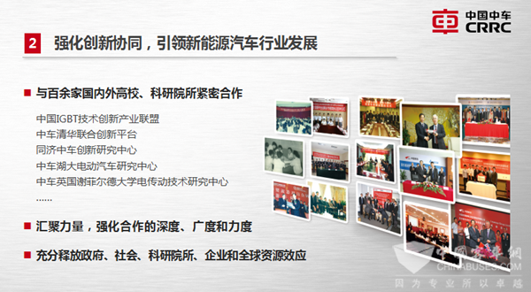 中车电动将依托中国IGBT技术创新产业联盟、中车清华联合创新平台、同济中车创新研究中心、中车湖大电动汽车研究中心、中车英国谢菲尔德大学电传动技术研究中心等平台,与百余家国内外高校、科研院所紧密合作,充分释放政府、社会、科研院所、企业和全球资源效应。